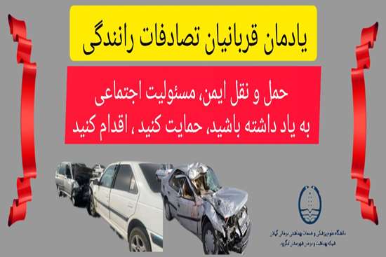 امسال از ۱۹تا۲۵ آبان برنامه های یادمان قربانیان تصادفات رانندگی با شعار " حمل و نقل ایمن، مسئولیت اجتماعی" و " به یاد داشته باشید، حمایت کنید ، اقدام کنید؛ در راستای پیشگیری از حوادث جاده ای. برگزار میشود .